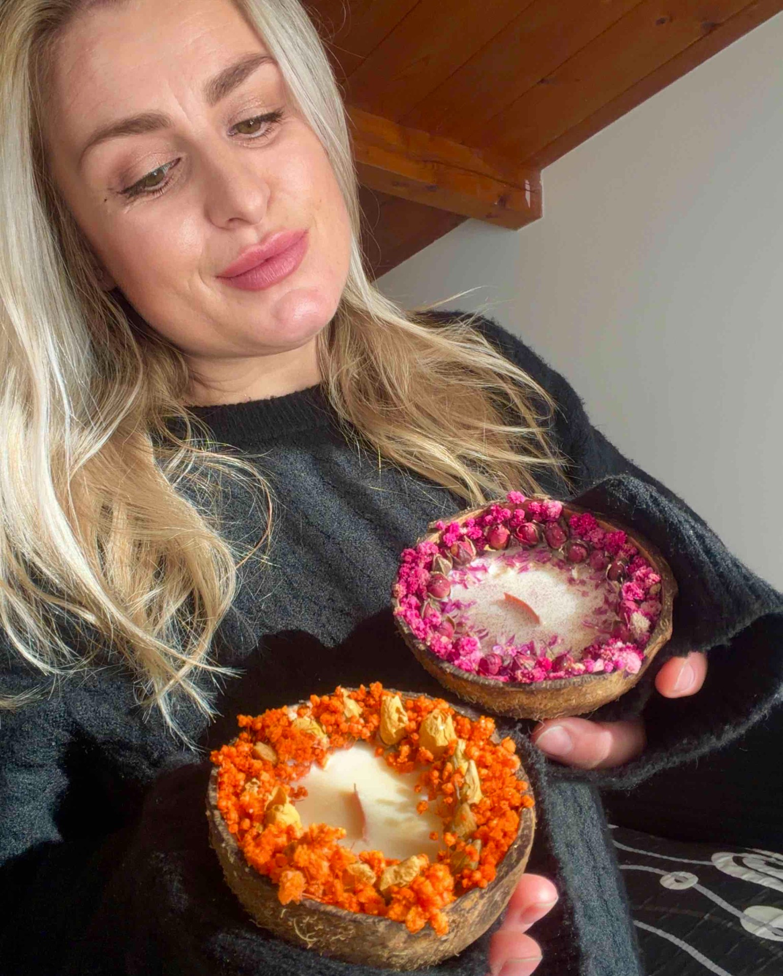 Tak jsem si řekla: Musím vymyslet něco lepšího. Něco ekologického, zdravějšího – a přitom krásného. Protože svíčky miluju a nechci se jich vzdát. A tak se zrodila myšlenka svíček v kokosu.