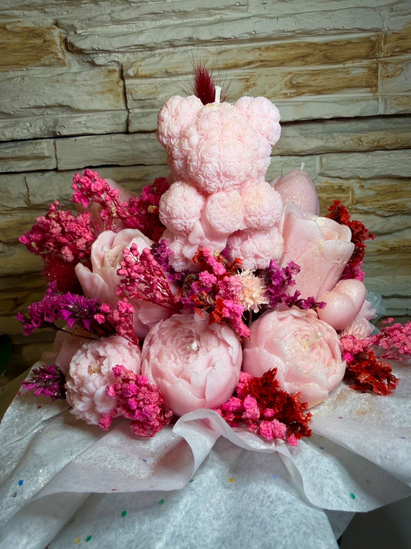 Materiál svíček je sójový vosk a květiny jsou přírodní sušené.