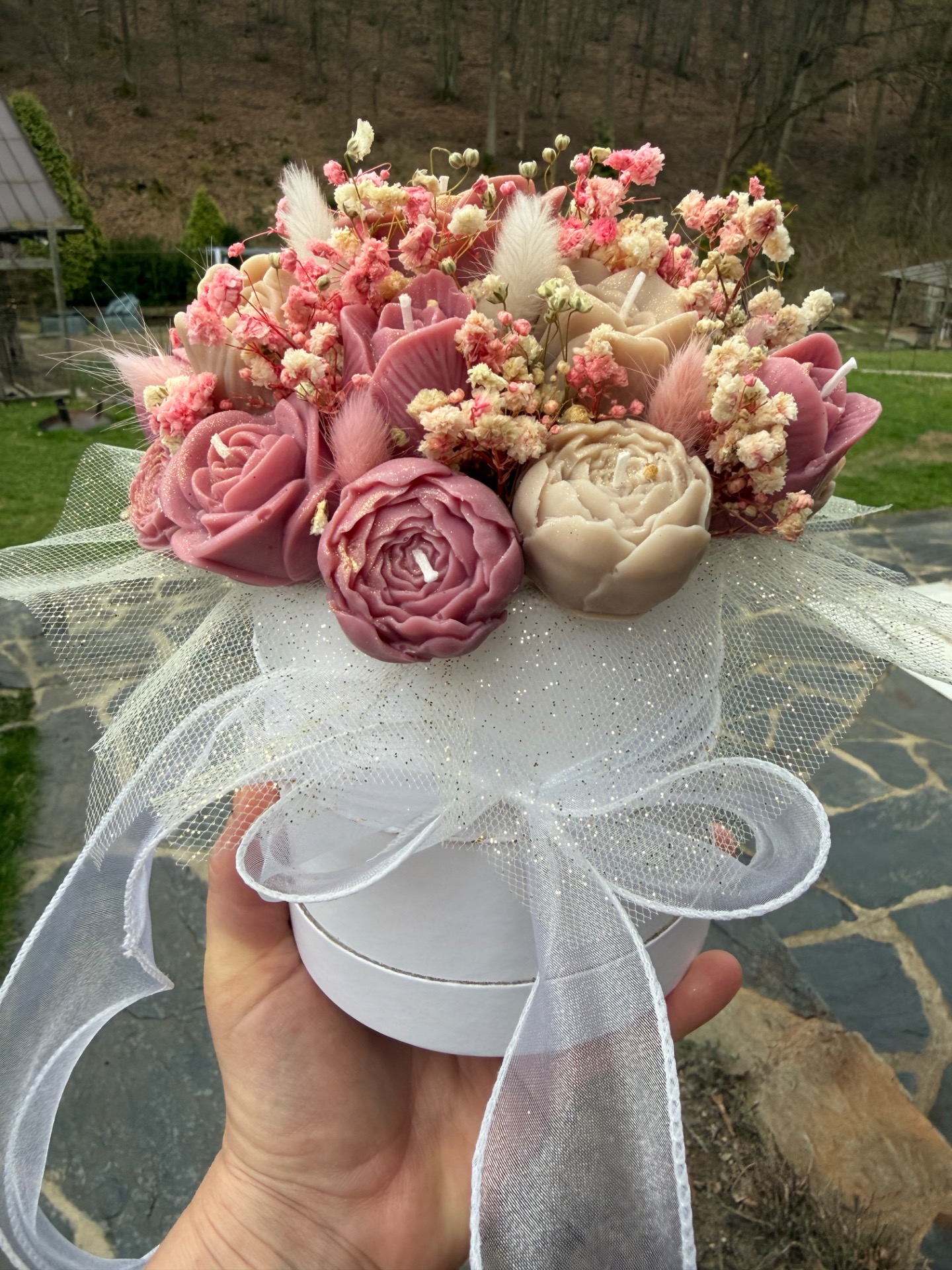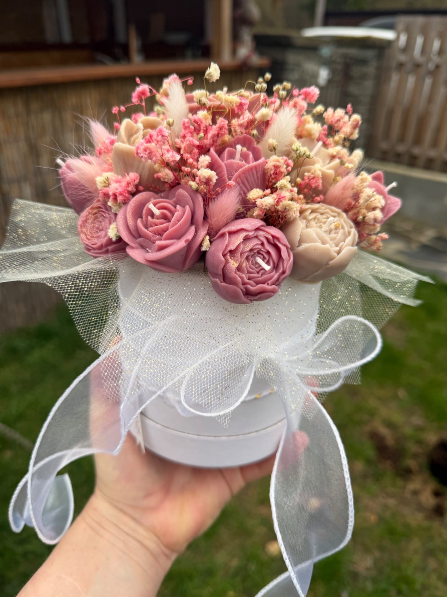 Materiál svíček je sójový vosk a květiny jsou přírodní sušené.