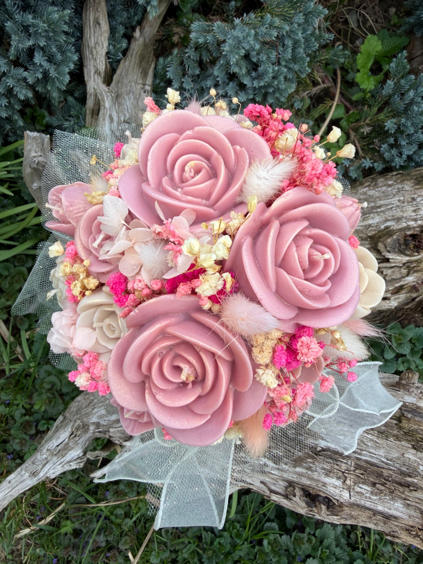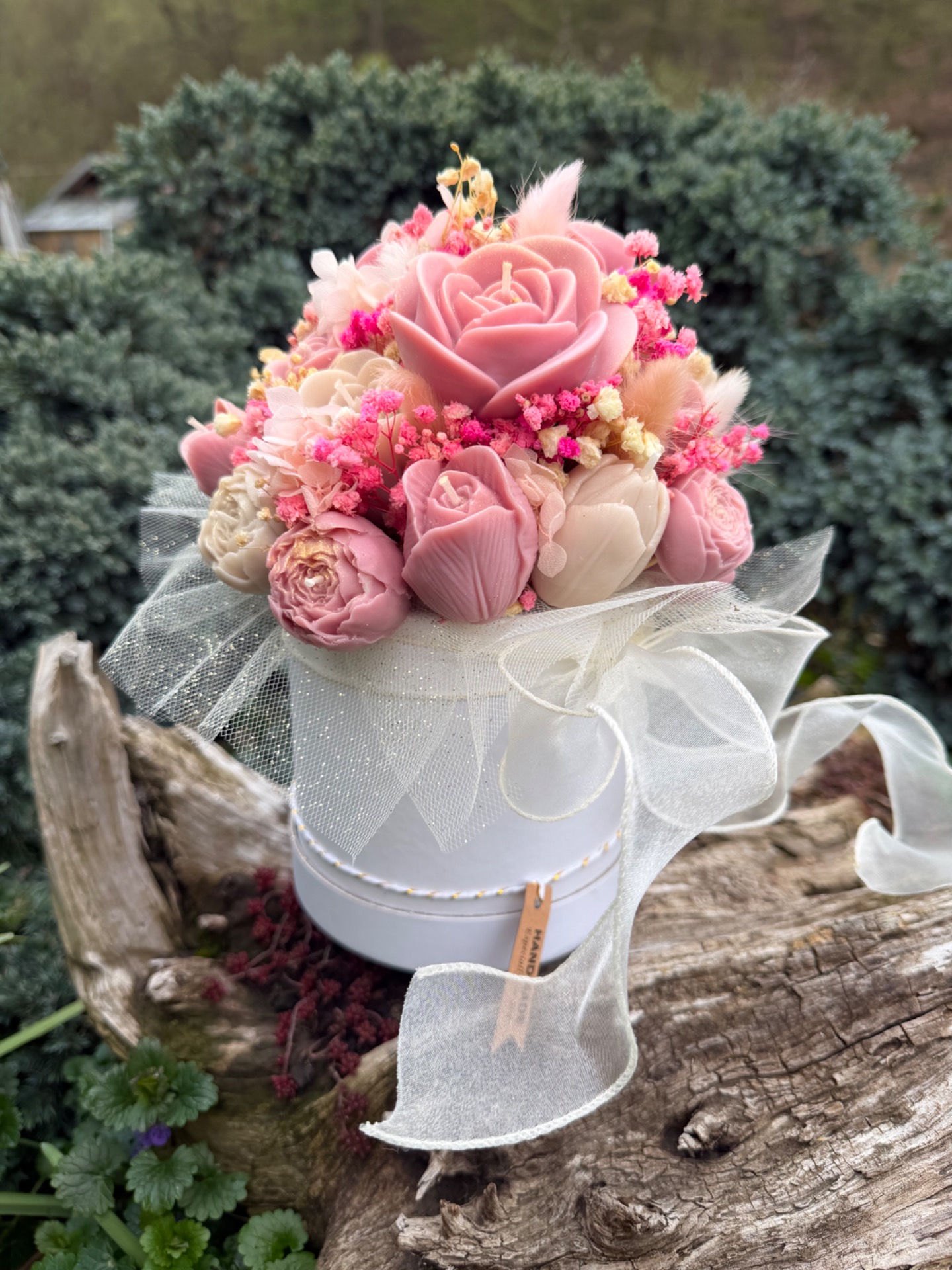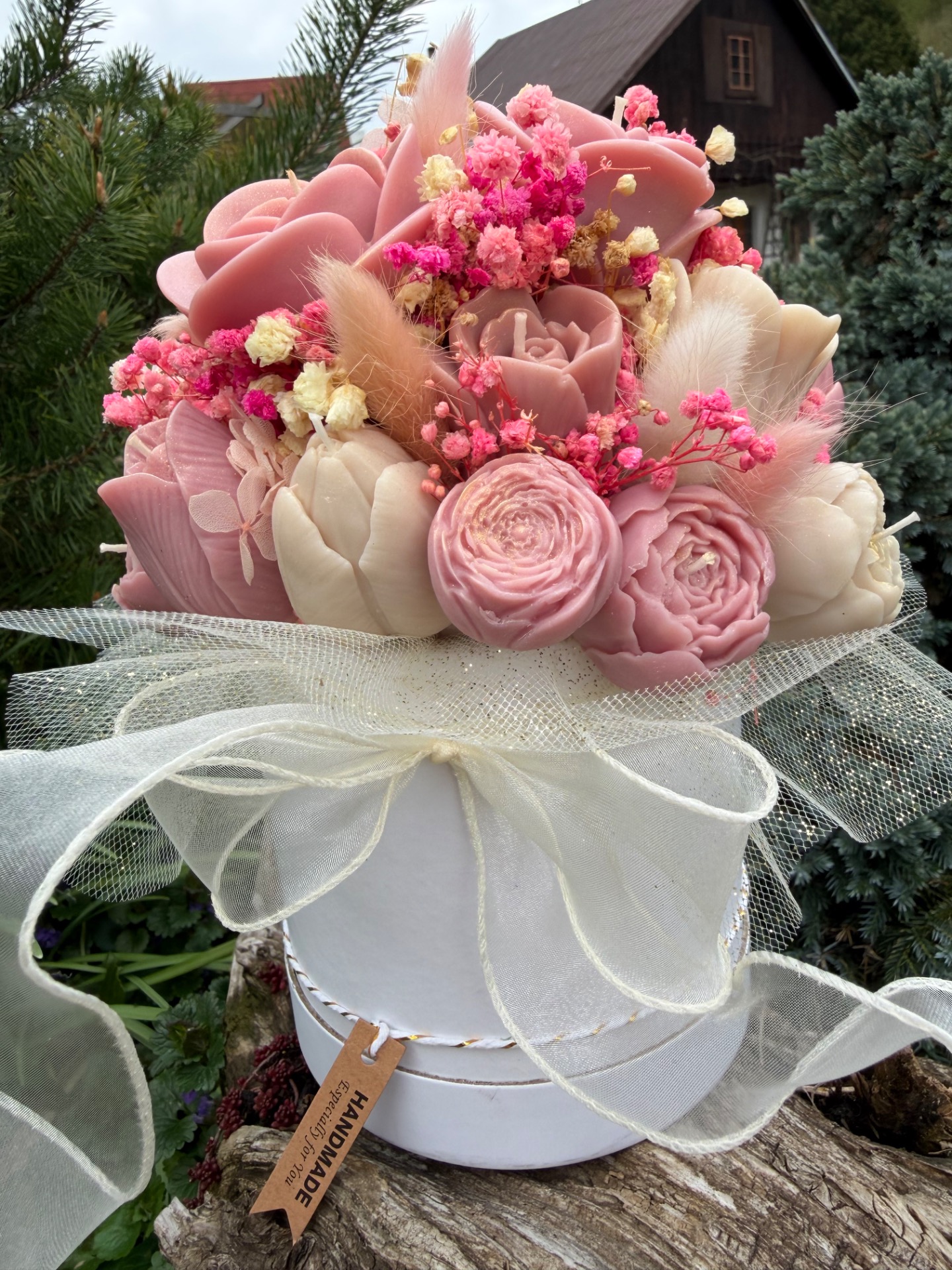 Materiál svíček je sójový vosk a květiny jsou přírodní sušené.