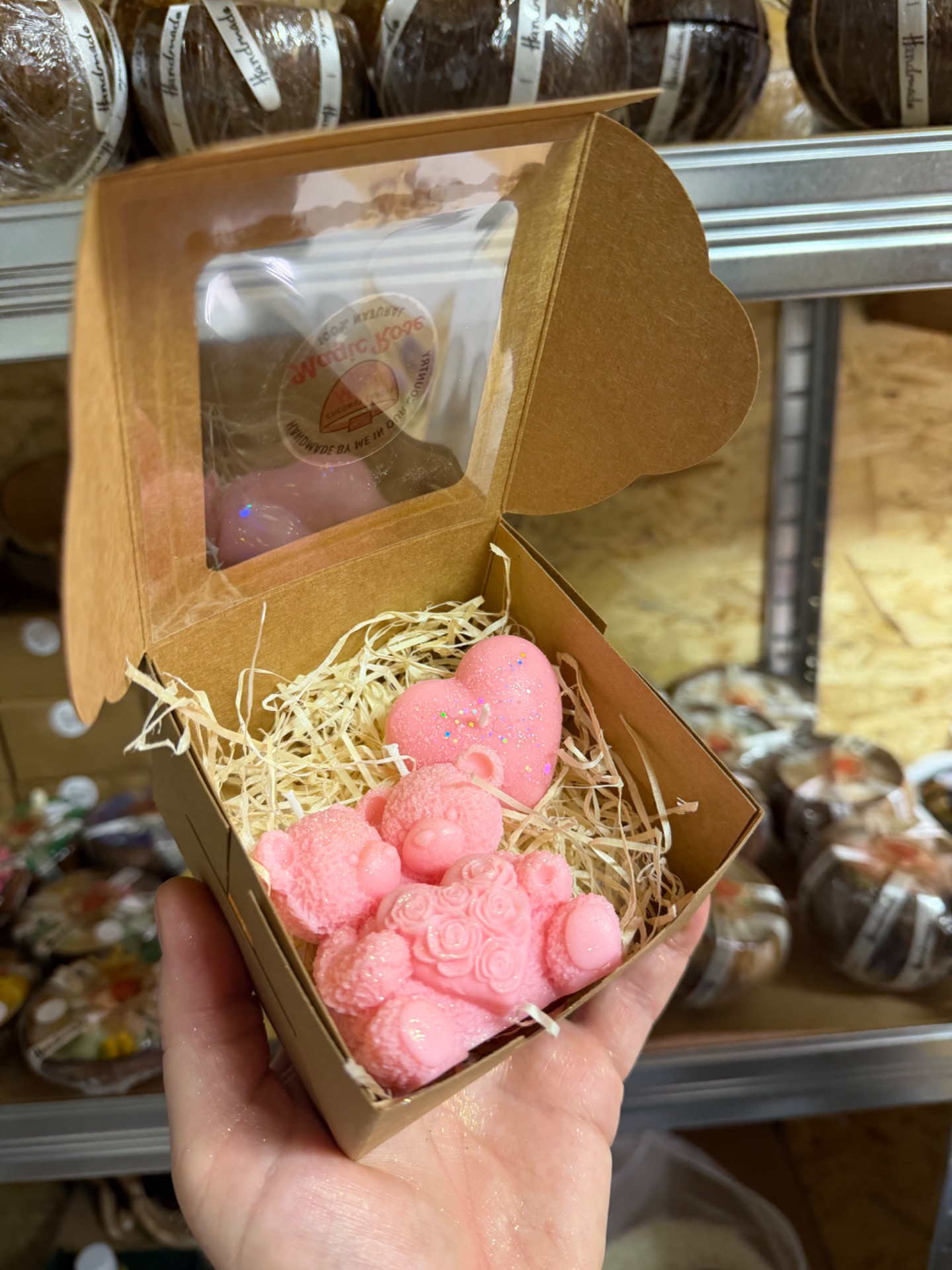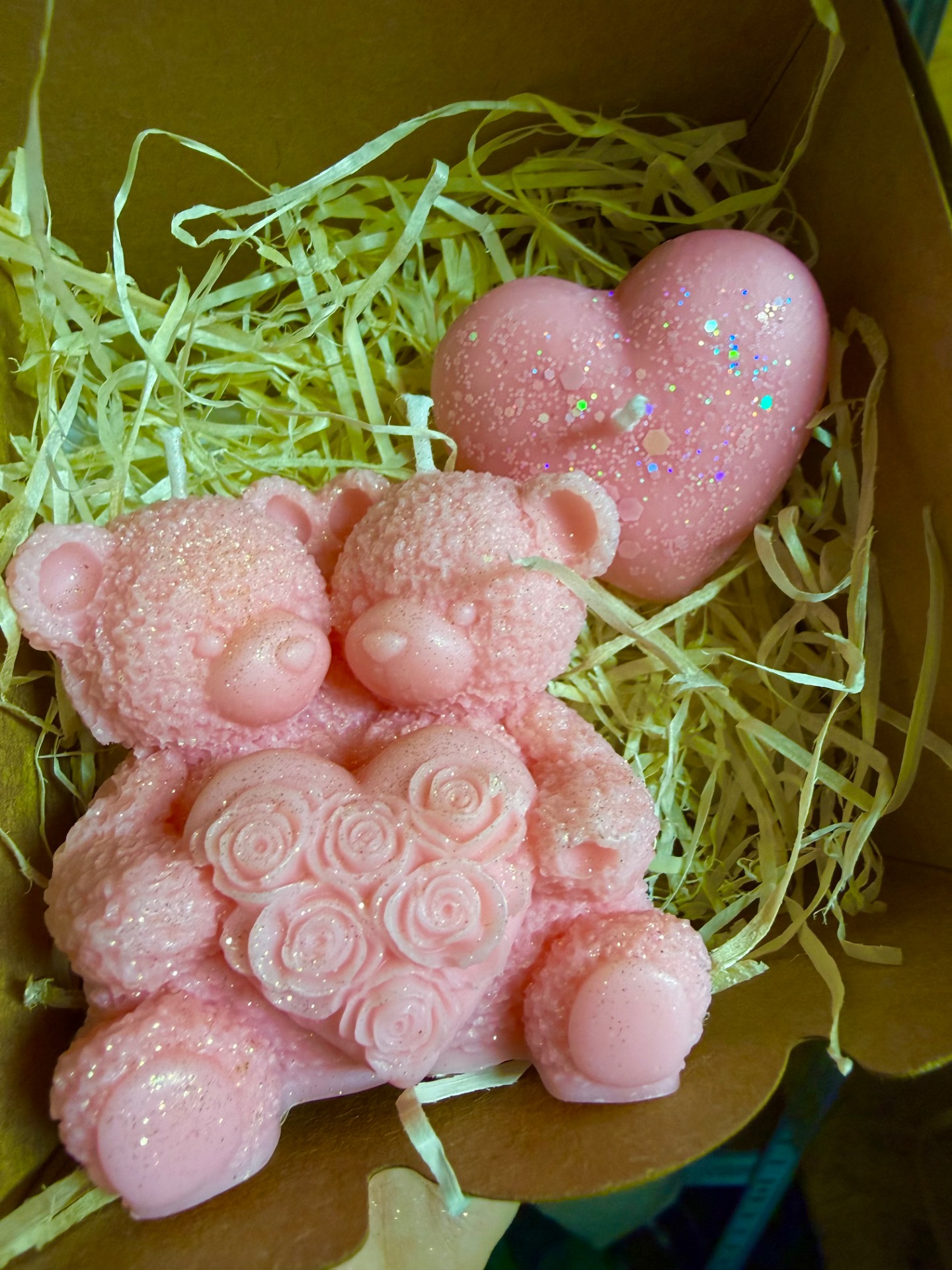 Motiv dvou medvídků a srdíčko, které potěší jako malý dárek Vyrobeno ze 100% sójového vosku s bavlněným knotem.