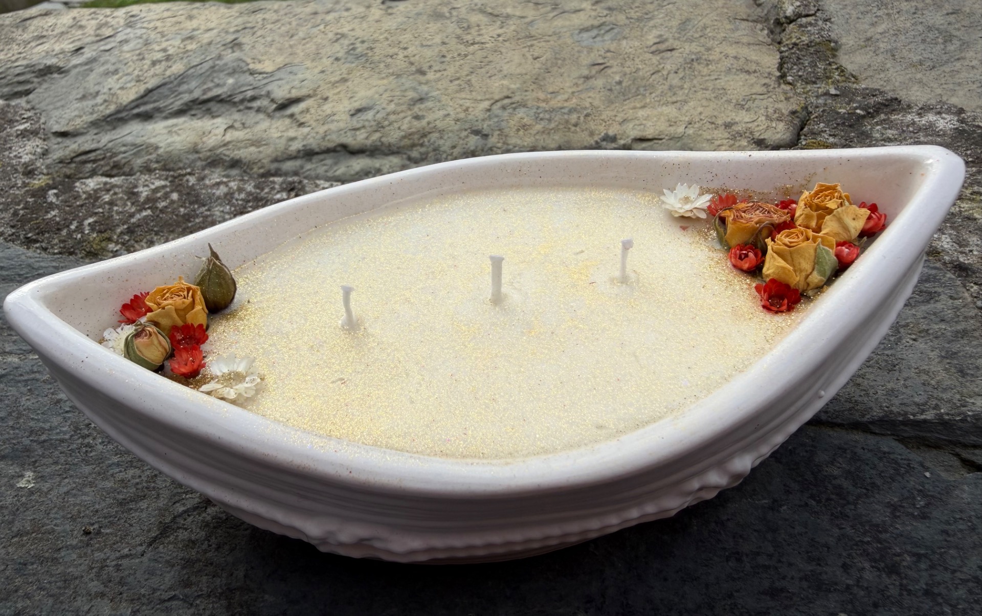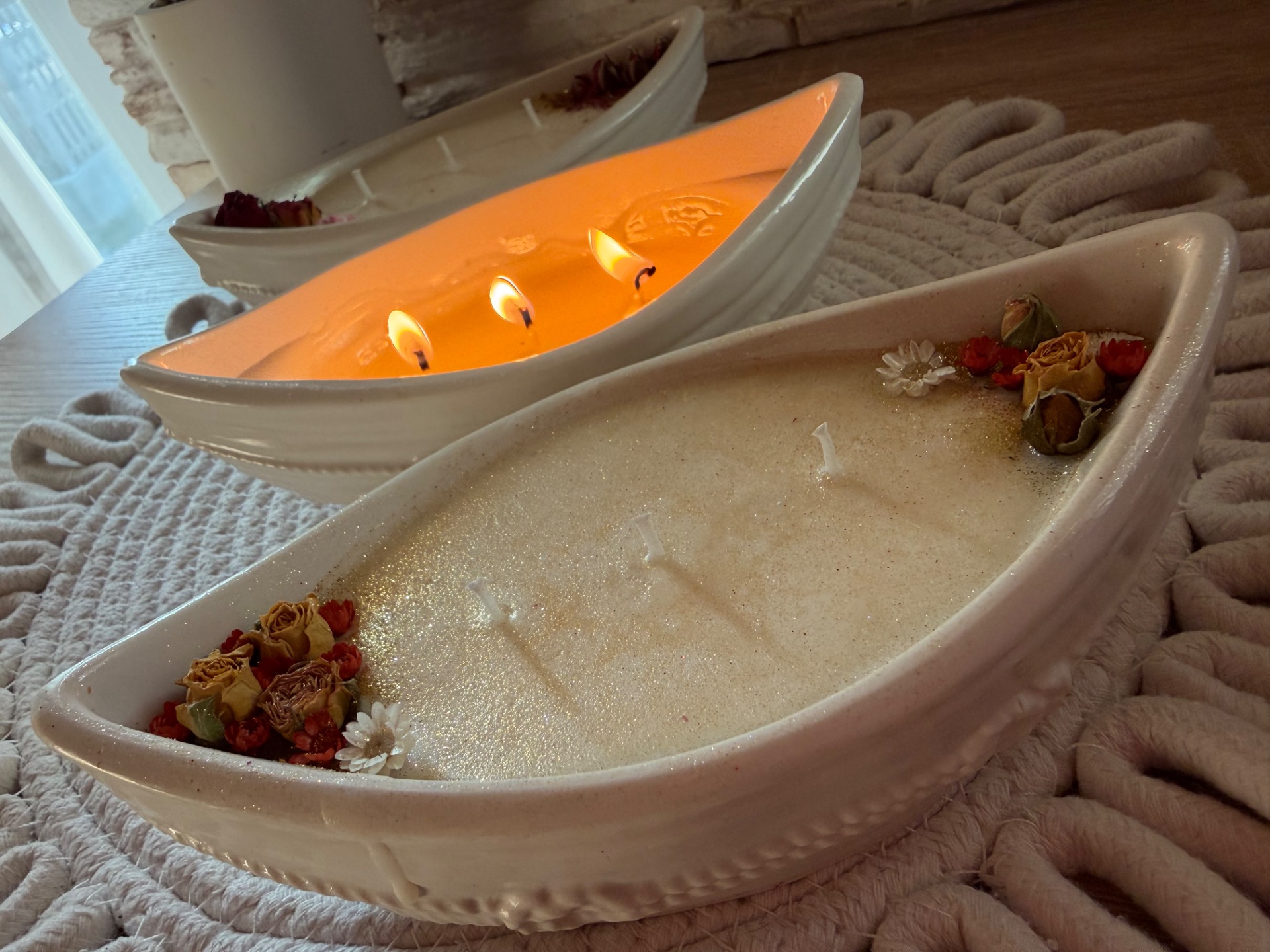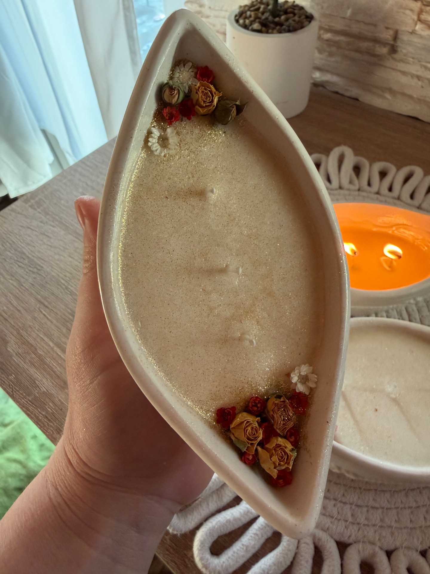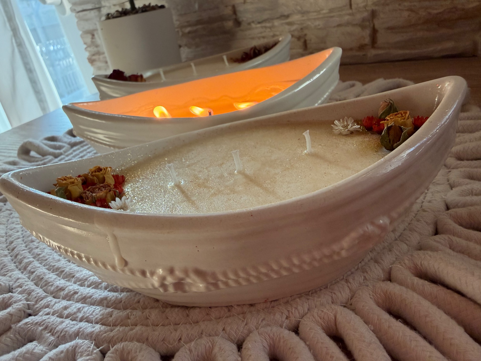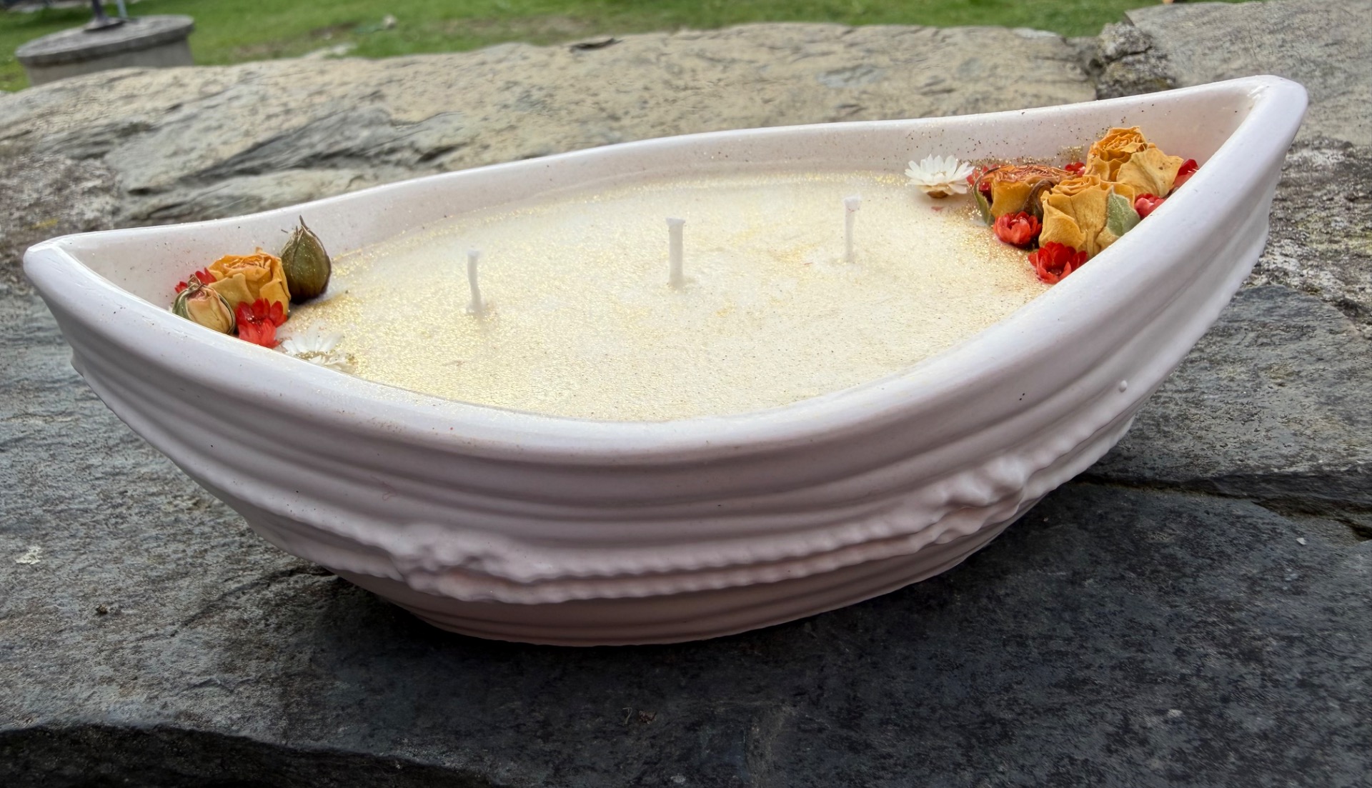 Originální autorská sojová svíčka v loďce vyrobená mnou z Jesmonitu.Svíčka je parfémovaná přírodními oleji s vůní piňakolady. Suroviny a materiály na mé výrobky pochází od českých dodavatelů 160ml