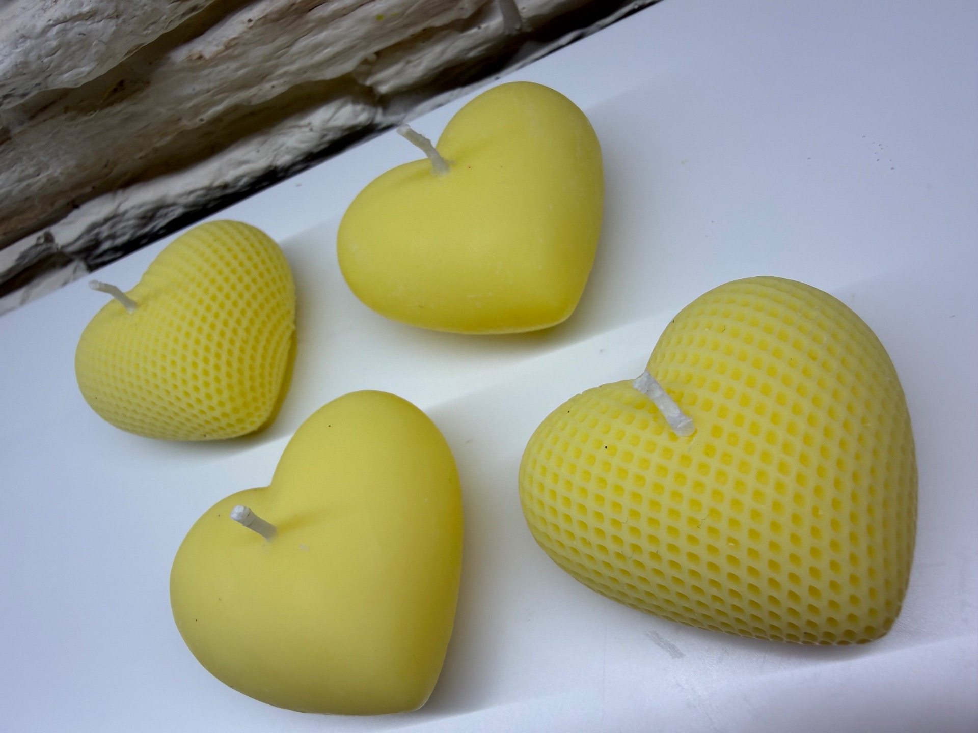 Sojová svíčka MagicRose srdce žluté mřížkované