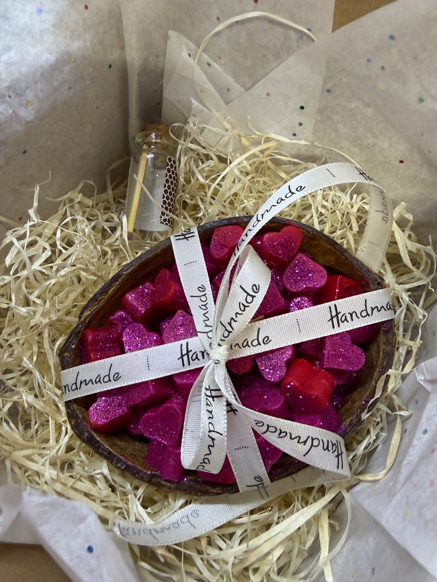 • balení v ceně: podtácek (sklo/kov), sklenička se zápalkami, hedvábný papír, přírodní dřevité výplně, pevná papírová krabička.