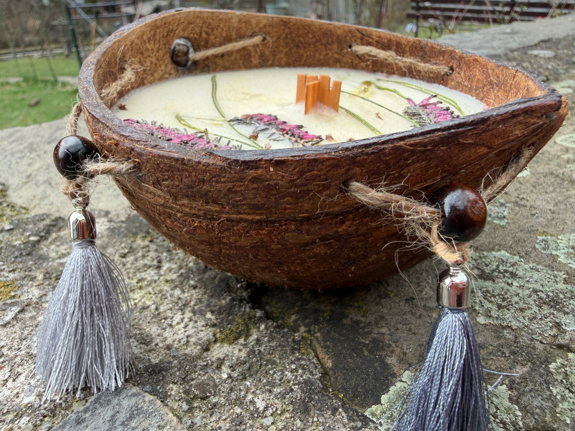 • Pravá zdobená kokosová skořápka, kterou lze po vyhoření znovu využít (refill)