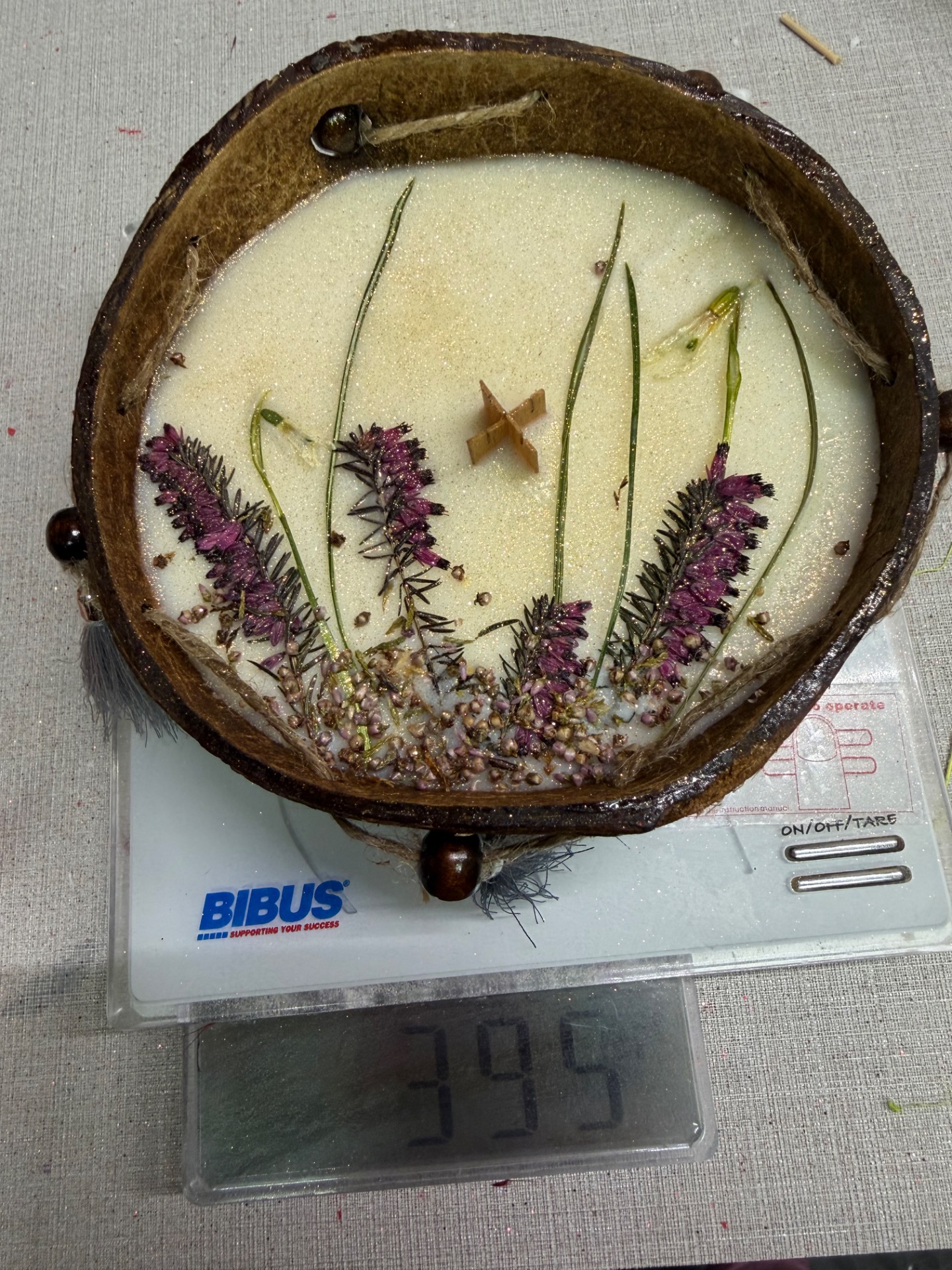 395 g. Každá kokosová skořepina je jiná a originál, proto se může mírně lišit hoření