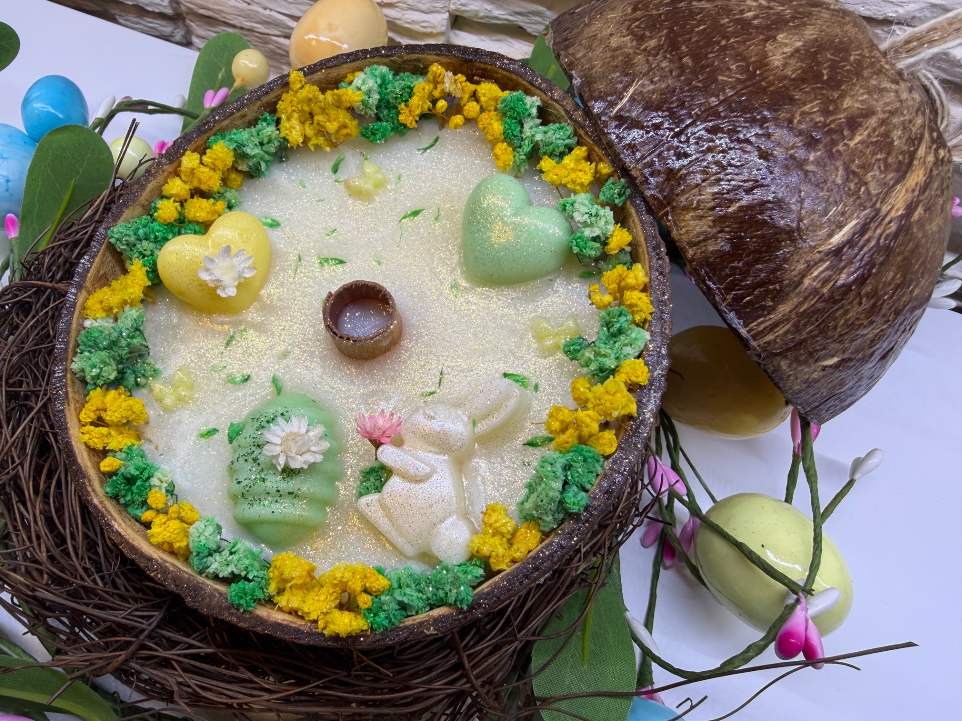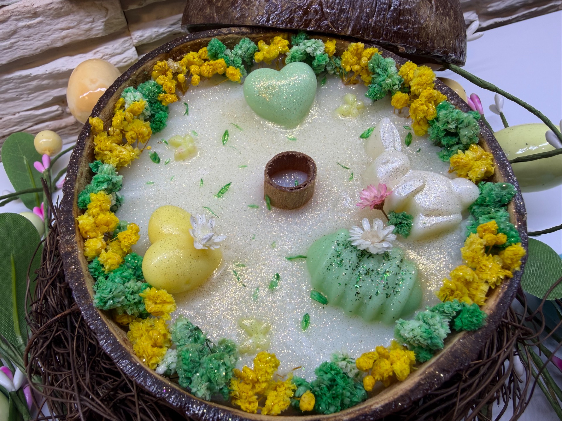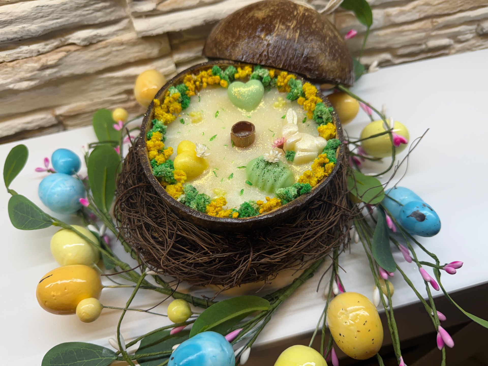 - Pravá kokosová skořápka, kterou lze po vyhoření znovu využít (refill)