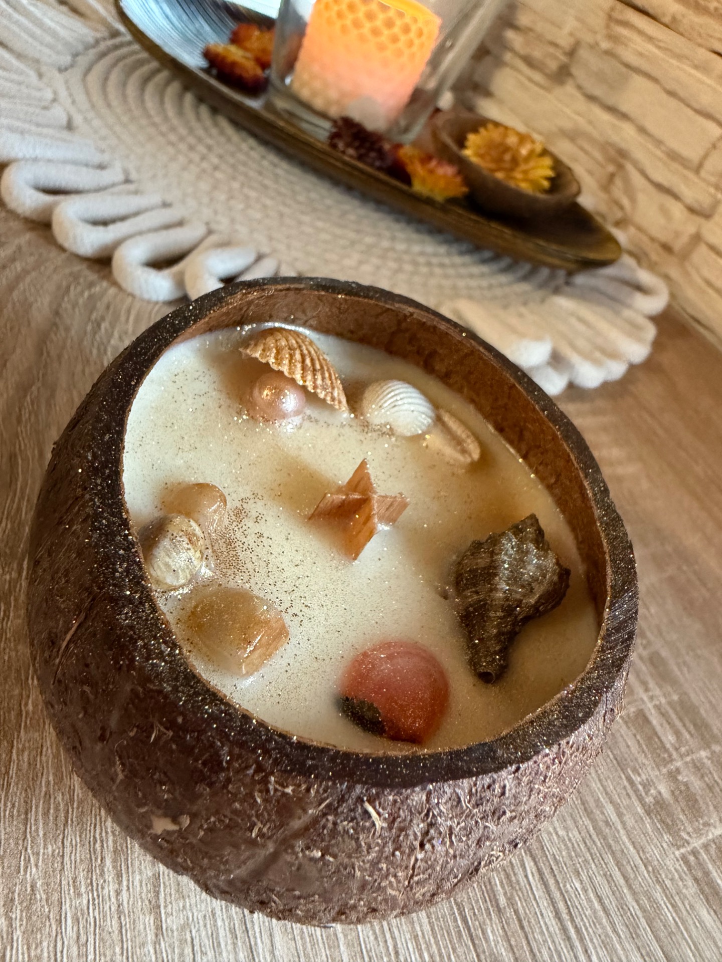 Svíčka MagicRose minerál Jaspis a dary moře